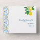 Blue Mediterranean Tiles Italy Crest Lemon Wedding All In One Invitation