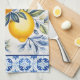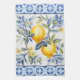 Blue Mediterranean Tiles With Lemons Tea Towel