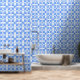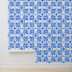 Blue Mediterranean watercolor tile pattern Wallpaper
