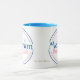 a 11 ounce Medium Brew coffee mug  with blue handle and interior a cup filled with magic!