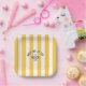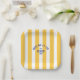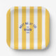 Blue Meet Me At The Beach Yellow Cabana Stripe Paper Plate