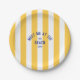 These paper plates are perfect for your summer gatherings at the beach... Yellow cabana stripes with blue distressed custom Meet Me At The Beach lettering. Personalise with the details of your gathering... year and beach destination. Perfect for a family or friends beach trip, beach theme party or beach club bachelorette. Matching accessories available in the Meet Me At The Beach Yellow Cabana Stripe Collection.