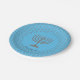 Elegant Sky Blue Menorah HANUKKAH Paper Plates, showing faux silver grey menorah in a tiled pattern. At the centre, there is an image of a large menorah which is CUSTOMIZABLE, so you can upload your own image. Underneath, the text reads CHAG SAMEACH. This is also customisable so you can add your greeting and/or name, etc (up to two lines). This is a minimalist, simple, elegant design, especially suitable for Hanukkah and other Jewish feasts. Comes in other colours, and matching items are available.