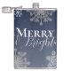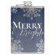 Blue Merry and Bright Snowflakes Christmas Hip Flask