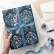 Blue Metallic. Damask Elegant Chic Christmas Wrapping Paper