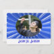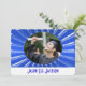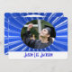 Contemporary blue metallic sunburst with white border for graduate's name.
