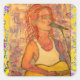 shows singer songwriter girl playin' acoustic guitar with blue microphone and drip painting background from original painting !