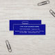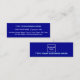 Blue mini business card for your customers or clients to easily find your business address and contact information. The front side contains plain text information and the back side contains your business name and logo. Customise it by typing your business name, your name, your title, address, phone number, e-mail and uploading your business logo. Mini business card that you can also use to build brand name awareness. Please check the appearance of the front and back sides after typing texts and uploading logo. If the appearance is pleasing to you, you can place your order now. If you need to resize or reposition the texts and logo, please adjust in the design tool. You can also change the background colour, font colour and font style in the design tool.