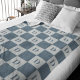Blue Mini Squares Pattern Monogram Fleece Blanket