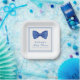 Blue Minimalist Bow Frame Baby Shower Paper Plate
