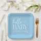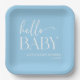 Blue Minimalist Hello Baby Baby Shower Paper Plate