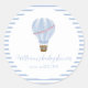 Blue Minimalist Hot Air Balloon Boy Baby Shower Classic Round Sticker