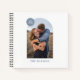 A simple notebook with a modern arch design that doubles as a photo frame. Beneath the photo is space for a family name. In the upper-left hand corner, there is a colourful dot, which includes space for custom text. The back of the journal has a colour coordinated dot pattern. This minimalist notebook would be perfect as a wedding or baby album.