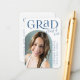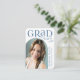 Simple mini size graduation announcement features modern typography and arch shape photo in teal blue, elegant and fun, Custom it with your own photo and grad party information.