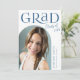 Blue and white simple graduation announcement features 2 photos with modern typography and arch shape, elegant and fun, Custom it with your own photo and grad party information.