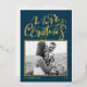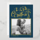 Merry Christmas! Send Christmas wishes to family and friends with this customisable photo Christmas card. It features modern calligraphy and a simple script. Personalise this gold foil Christmas card by adding your photo, message and names. This modern Christmas card is available on other cardstock.