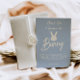 Simple Modern Cute Bunny Baby Boy Shower thank you card. The warm palette of soft blue, Beige ivory tones sets the stage for a Boho Chic and Elegant affair. From stylish typography to adorable Rabbit theme. Don't' forget to discover the whole collection.