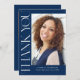 Blue Modern Elegant Vertical Two Photo Graduation Thank You Card features a fun and modern type, along with your graduation photo. Add your note of thanks on the back, or leave blank for a handwritten message.
