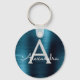 Blue Modern Faux Stainless Steel Monogram Key Ring