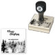 Blue Modern Merry xmas trees forest raindeer Rubber Stamp