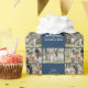 Navy blue natural modern elegant traditional contemporary muted colours beige, black and white multi photo collage holiday Christmas Santa Reindeer unique persona lized holiday gift wrap.