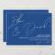 A modern, chic and elegant landscape wedding invitation with custom names with a hand written calligraphy in white and blue. All the text, names and background colours are customisable. A simple and minimalist invitation.
