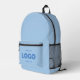 Add your own modern style rectangular bright royal blue or colourful business logo image to create promotional backpack.