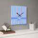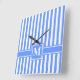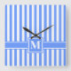 Blue Modern Stripe with Monogram Square Wall Clock