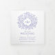 Blue purple hand-drawn growing leaf botanical art square-shaped wedding program with your own love story and remembrance sections. Personalise this wedding trifold program with your own wedding ceremony details, party names, love story, and dedications. Simple leaf design circling your own monogram initials in white and grey and blue purple colour. Other colours and matching wedding items available. © Original leaf drawing and design by Sarah Trett for www.mylittleedenweddings.com on Zazzle.