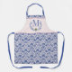 This Christmas design has a preppy grandmillennial design featuring a navy blue damask crest on a blush pink background. There is a place to add your monogram initial and name.