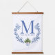 Blue Monogram Crest with Christmas Tree Hanging Tapestry