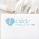Pretty wedding return address labels, done in white, with a blue heart, on the left side, with a white one letter monogram. Personalise the blue text and monogram, to suit your needs.