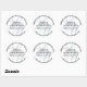 Elegant round certificate of authenticity stickers with black text and your monogram in light ashy blue. Personalised certificate of authenticity stickers with your name, monogram, and website. Elegant monogrammed certificate of authenticity stickers for him with the artist's initials in light blue beneath the text.