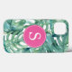 Add a touch of the tropics to your phone with this cute iPhone case design featuring a watercolor illustration of lush tropical banana and palm leaves in vibrant shades of green. The striking pink background highlights your personalised monogram in crisp white, creating a stylish and eye-catching accessory.