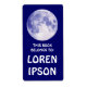 A bookplate label with a picture of the Moon, enter your name to customise. Can also be further customised.