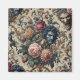 Blue Moon Grimoire unfurls a spellbound tapestry of blooming enchantments and snarling arcane keepers. Dusky rose, sapphire bloom, and parchment gold weave through florals that conceal incantations and ill-tempered guardians. A horned figure rears in silhouette—half myth, half omen—while a storm-eyed grotesque glares through the petals, mid-incantation.