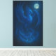A mystical blue phoenix rising under the full moon — glowing feathers, flowing celestial flames, and an aura of divine rebirth. Created in luxury fine-art style, perfect for collectors who seek elegance, symbolism, and high-end wall décor.