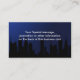 Dark blue night moonlight business cards with city skyline. Great for a dance studio business card, night club business card, restaurant business card or any other evening business. Customise online.