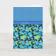 A chic Thank You card with the greeting in Welsh and a mix'n'match pattern of Turquoise and Yellow Polka Dots on Dazzling Blue and a coordinating, quirky Blur Moons pattern in two shades of Green and Turquoise on a Black background.