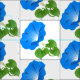 Blue morning glory flowers in repeat pattern, background colour customisable