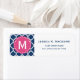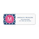 A chic, elegant, trendy blue and white Moroccan lattice trellis pattern with a cute white and pink dot border label frame for your custom monogram initial letter.