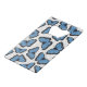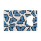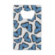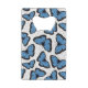 Seamless pattern design with blue morpho butterflies on hydrangea flowers linework background.