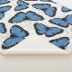 Seamless pattern design with blue morpho butterflies on hydrangea flowers linework background.