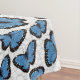 Seamless pattern design with blue morpho butterflies on hydrangea flowers linework background.