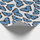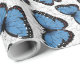 Seamless pattern design with blue morpho butterflies on hydrangea flowers linework background.
