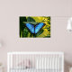 Butterfly Blue Morpho against a background of lush green foliage, real photo.