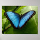 Blue Morpho butterfly nature photography poster. Photo wall art design. Colourful close up photo print of wild tropical insect animal. High resolution image. Beautiful art work for family living room, bedroom, kitchen, dining room, hall etc. Also nice as decor for restaurant, cafe, bar, pub, business, company, office, shop, store, school etc. Looks great with or without a frame. Original artwork that can be transfered onto any product in Zazzle including big canvas sizes. This horizontal image can also be cropped if necessary. Adding your own text is an option too. Pretty home decor gift ideas for elegant interior of new house. Custom high quality decoration designs to hang up on the wall.