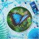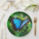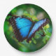 An amazing photograph of a Blue Morpho Butterfly (Morpho peleides) perched on some leaves.