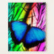 Blue Morpho Butterfly on Rainbow Background