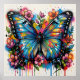 A hyperdetailed, ultra-quality closeup of a Blue Morpho Butterfly with vibrant, polychromatic wings, rendered in a vivid fusion of graffiti and splash art styles. Spray paint and melting oil gouache techniques create a high-contrast, street art aesthetic. Acrylic textures and CGSociety-level detail define the intricate floral nature elements surrounding the butterfly.